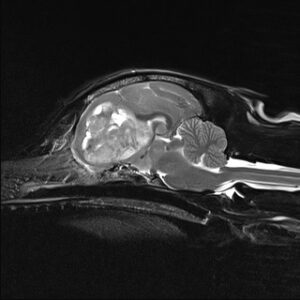 A few weeks before his referral, Branson’s behaviour changed and he started circling to the left, he would stop and stare, lick his lips and was very vocal so his mum Sue took him to see their local vet, who suspected he also lacked vision in his right eye. Initially, it was thought that he may have an inner ear infection. The day before his referral he deteriorated, becoming unstable on his feet, more vocal and circling more.