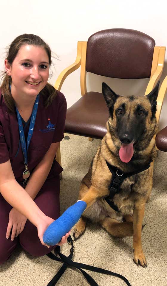 Spaniel patient after fracture repair surgery at Fitzpatrick Referrals Orthopaedics and Neurology